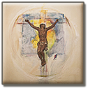 | Hauskreuz, barocker Korpus kombiniert mit modern gestaltetem Hintergrund | ![]() |